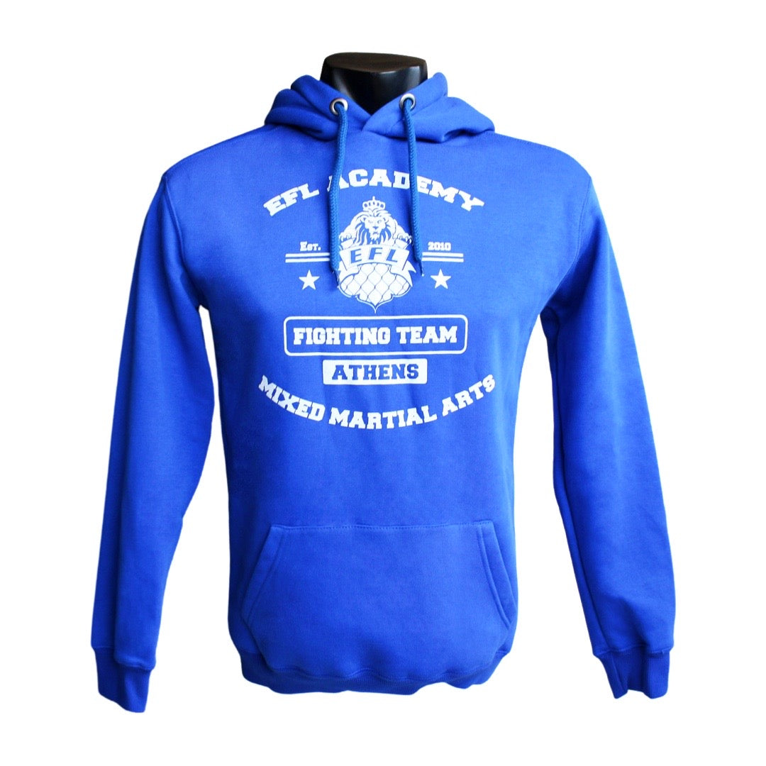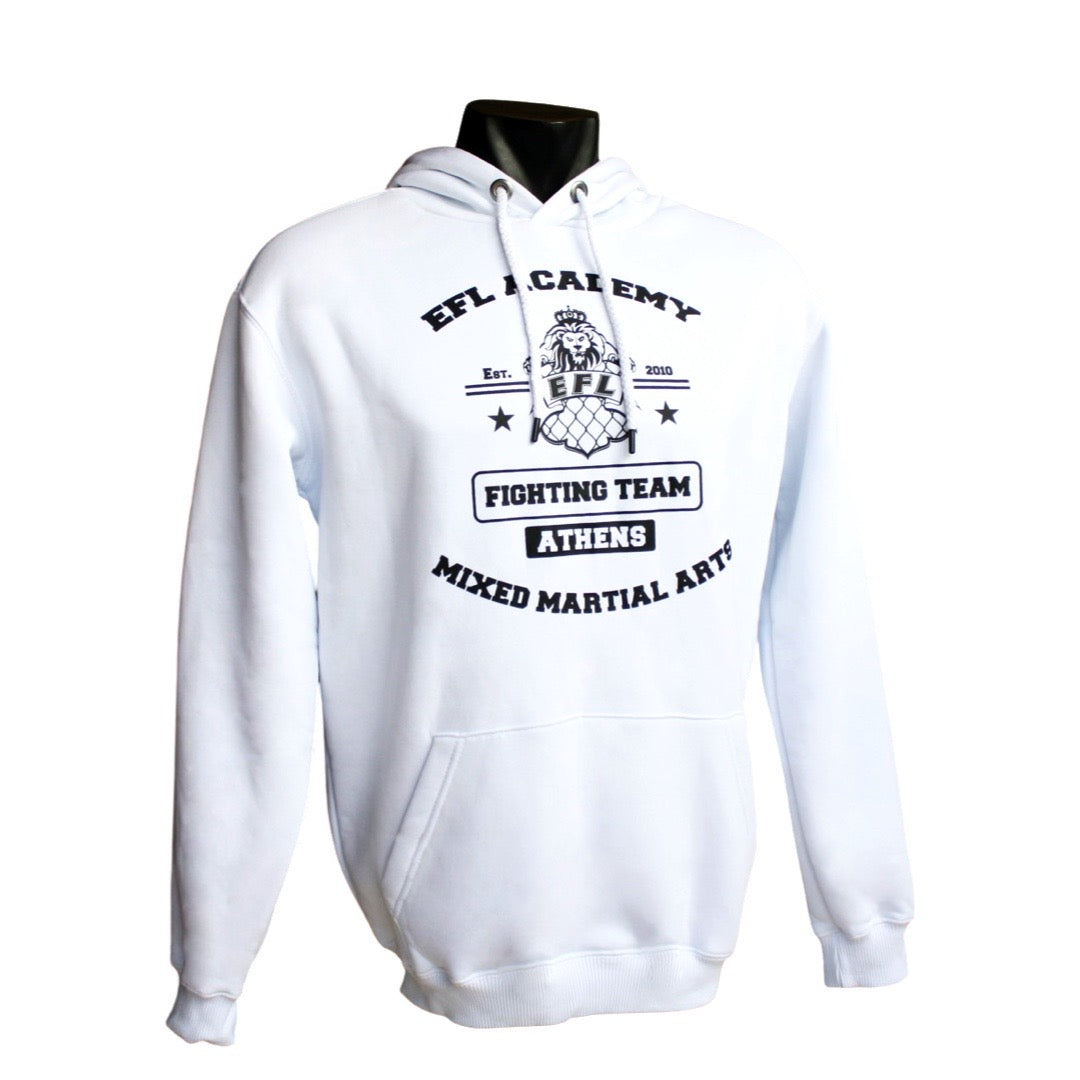 The EFL Hooded Sweatshirt has a clean, classic sport style, accented by an athletic two-ply hood and kangaroo pockets. Soft to the touch and a perfect layering option, it’s the quintessential easy-to-wear sweatshirt destined to keep looking and feeling better over time. These high quality sweatshirts feature a bold logo graphic on the front and smaller branded graphic on the back.